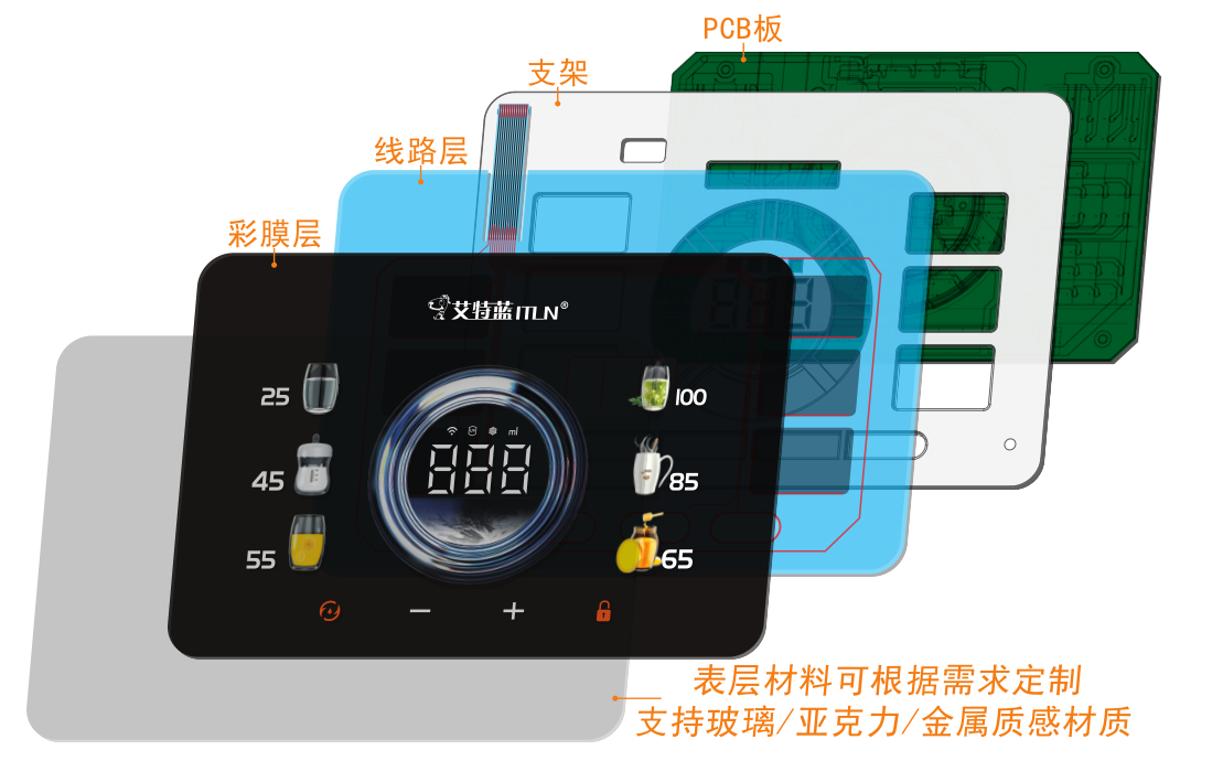| 主要应用领域 | 1. 智能家电:控制面板、装饰条; 2. 汽车电子:中控台面贴、仪表盘标识; 3. 医疗器械:设备操作界面,要求生物兼容性与高洁净度; 4. 工业控制:工控机、仪器仪表面板; 5. 消费电子与健身器材等。 |